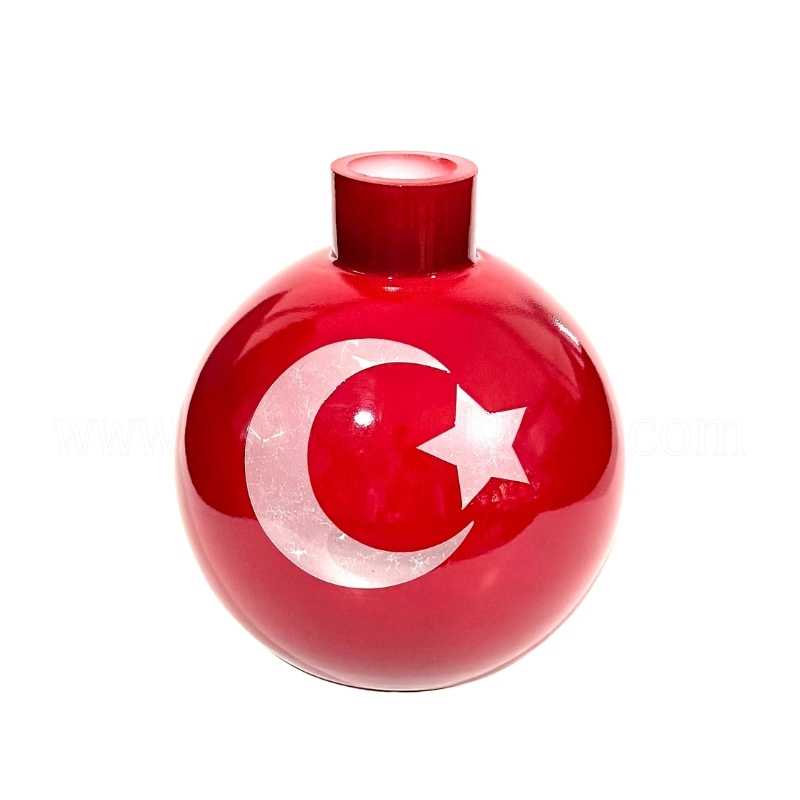 Ürünlerimizin tamamı orijinal ve faturalıdır. Yuvarlak şeklinde dizayn edilmiş ay-yıldız desenli özel şişe, kilitli veya vidalı nargileler uyumlu şişesidir. Ay-yıldız bulunan bölüm şeffaftır. Bu bölüm sayesinde içerideki su seviyesini görmeniz mümkündür. Ay yıldız temalı bu özel şişe aynı zamanda obje veya vazo olarakta tercih edilmektedir.