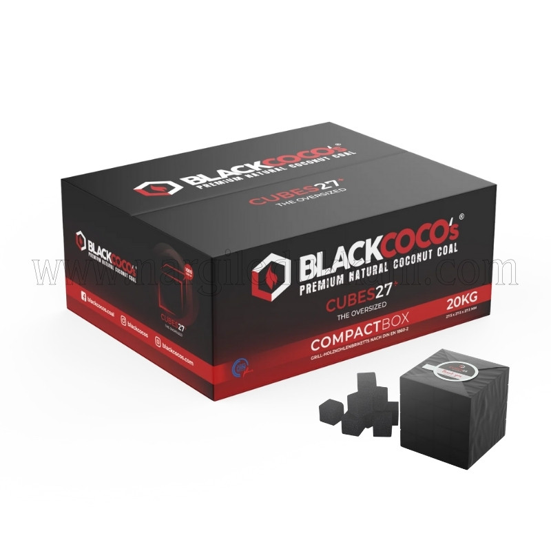 Black Coco's 27 er charcoal olarak adlandırılan küp nargile kömürü Endonezya'da hindistan cevizi kabukları kullanılarak üretilmiştir.