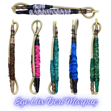 Ürünlerimizin tamamı orijinal ve faturalıdır. Yeni model, lüx kahveci tipi deri nargile marpucudur. Alt adaptör ve ağız kısmı metal destekli olup defermasyona karşı korumalıdır. Hortum kısmı özel keçi derisinden imal edildiğinden dolayı kolay tat tutar. Tutma kısmı renkli parça deri ve parça kumaşlarla süslenerek modern ve sağlam bir görüntüye kavuşturulmuştur. Yılların birikimi ile ustalaşan marpuç ustaları tarafından üretilmiştir.