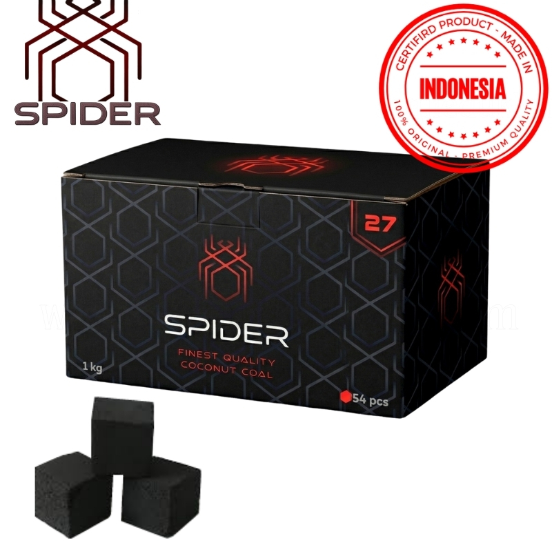 Ürünlerimizin tamamı orijinal ve faturalıdır. Endonezya'dan ithal edilen kaliteli Spider marka nargile kömürü küp şeklindedir ve hindistan cevizi kabuklarından üretilmiştir. Hindistan cevizi kabukları karbonize edildikten sonra küp şekline getirilerek özenle hazırlanmaktadır. En kaliteli şekilde nargile severlerin beğenisine sunulmuştur. Kaliteye önem veren Spider nargile firmasının hazırladığı bu kömür kömürü kötü koku, baş ağrısı, is ve tad bozma yapmaz. Sıkı yapısı sayesinde diğer standart nargile kömürlerinden daha dayanıklıdır.